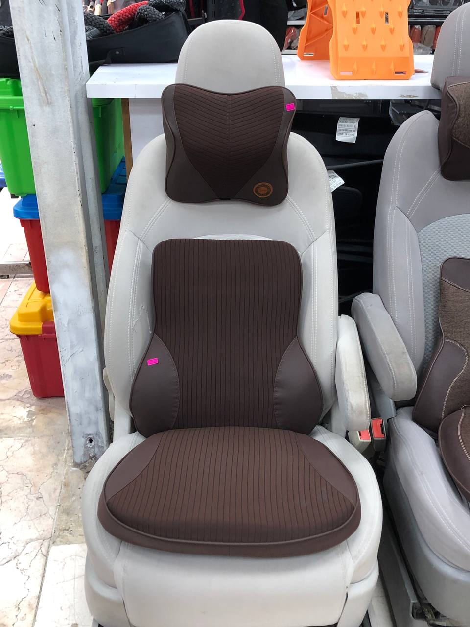 پشت کمری وگردنی مموری فوم محصول درجه 1وارداتی روکش چرم و پارچه ضد تعریق و قابل شست شو ماندگاری بالای 10سال قابل انعطاف پذیری بالا مناسب انواع صندلی خودرو،اداری،منزل..... موجوددر رنگهای زرشکی ،قهوه ای،کرم